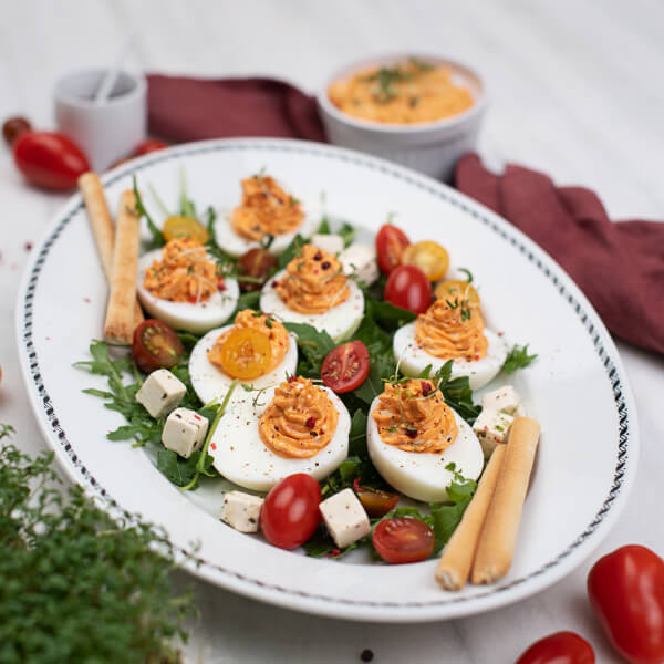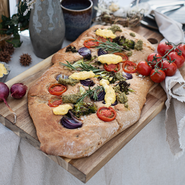 Dinkel-Focaccia mit WOJNAR’S Ei-Aufstrich und Wintergemüse