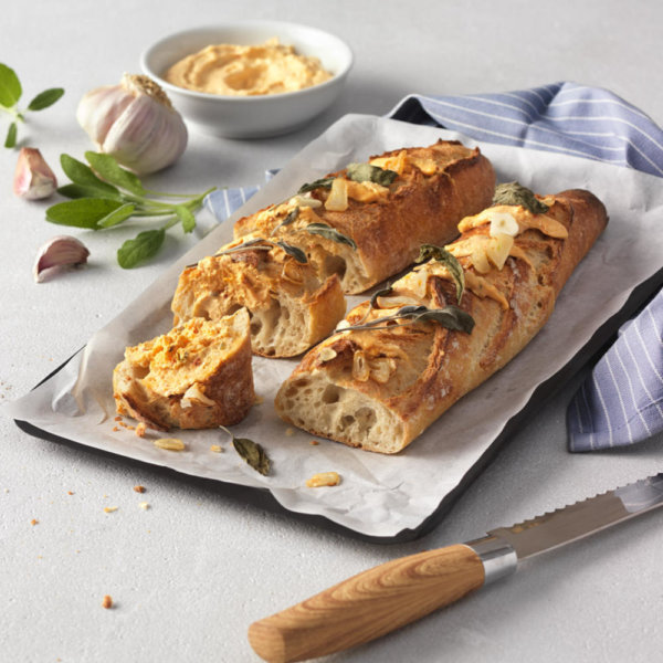 Baguette mit WOJNAR’S Liptauer mild, Salbei und Knoblauch
