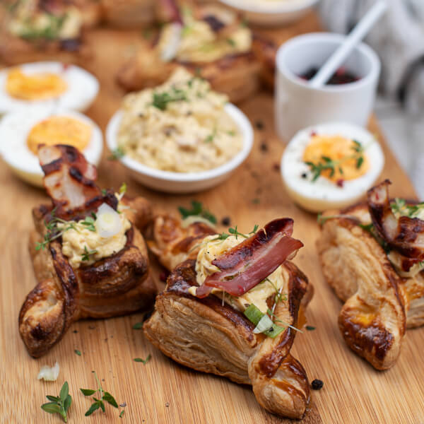 Blätterteigecken mit WOJNAR’S Tramezzini Speck-Ei