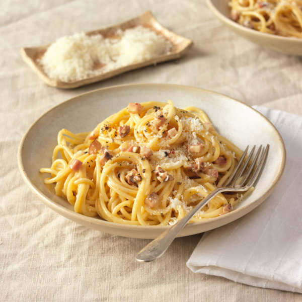 Spaghetti Carbonara mit WOJNAR’S Tramezzini Speck-Ei