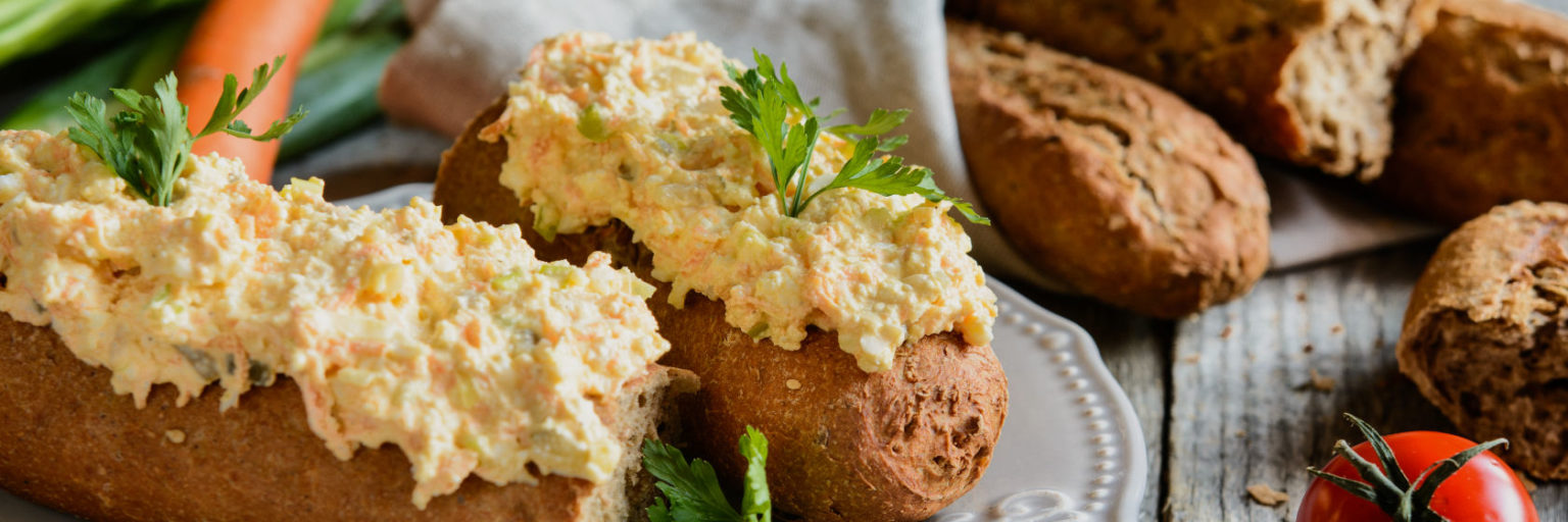 Gefüllter Jägerwecken mit WOJNAR’S Tramezzini Pikant und WOJNAR’S Ei Aufstrich