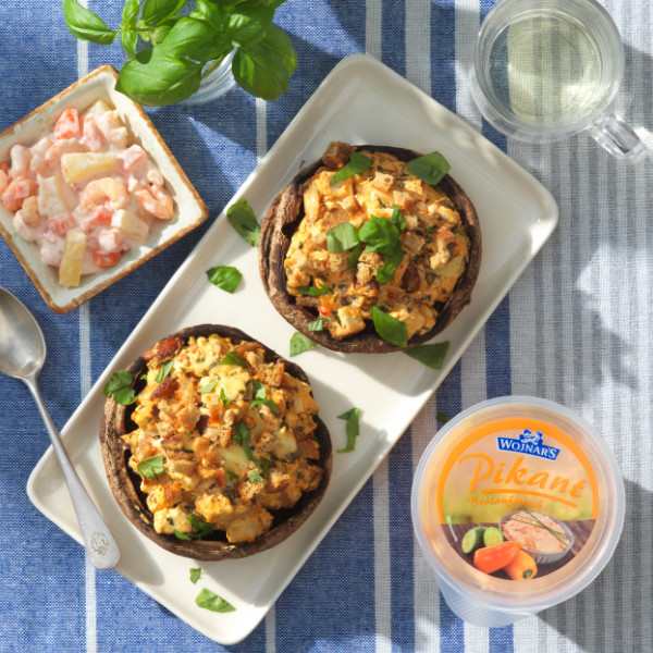 Portobello Champignons gefüllt mit Tofu & WOJNAR’S Pikant Aufstrich