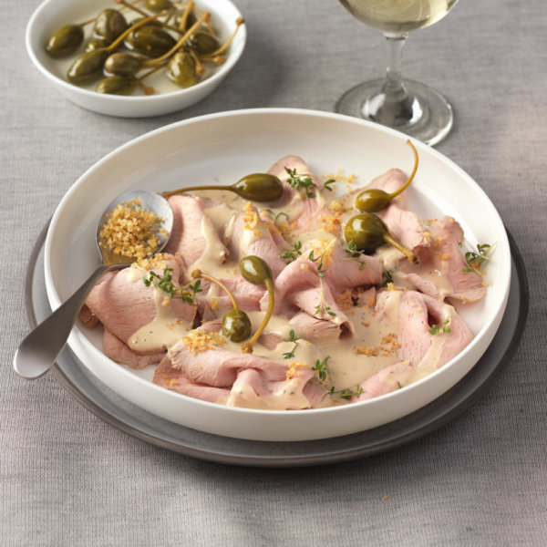 Vitello Tonnato mit WOJNAR’S Thunfisch Aufstrich und Kartoffelkrusteln